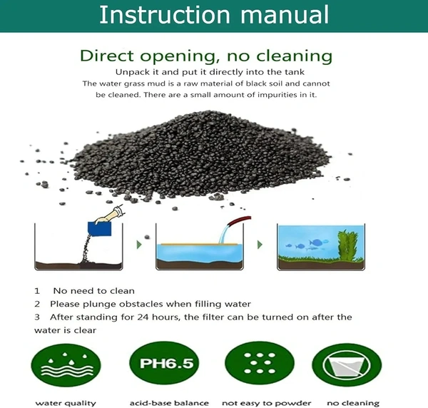 The high-level substrate for planting aquariums provides basic nutrition for the plant root structure for long-term successful planting of freshwater aquariums Compared with sand and other sand, more suitable for the growth of most grass roots. Formulated for freshwater planted aquariums, tropical fish, and freshwater dwarf shrimp. Helps clarify and detoxify water. PH value: 7.5. You can adjust the water quality is more suitable for the growth of aquatic plants ideal range. There is no need to wash, please use the original state, if washed with water will lead to muddy mud.