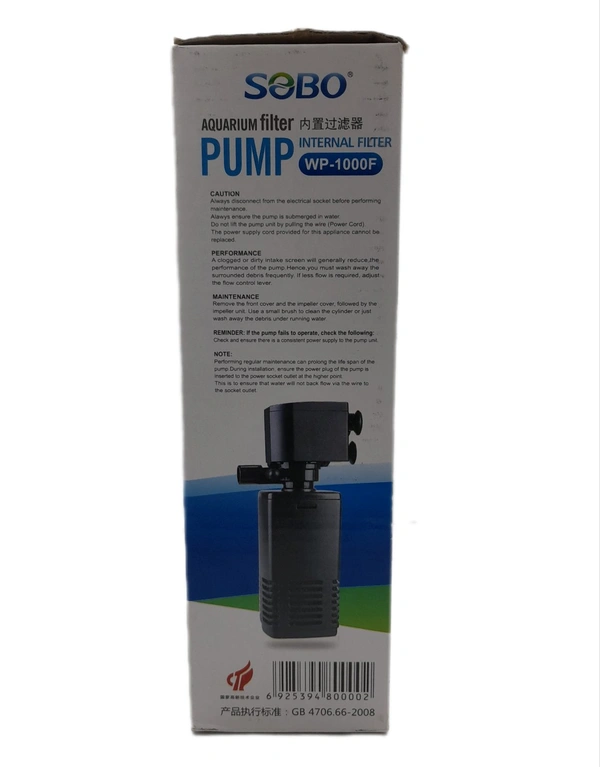 Sobo WP-1000F Aquarium Internal Filter [AC 220-240V 50/60Hz POWER : 15W F.MAX :650L/HR]