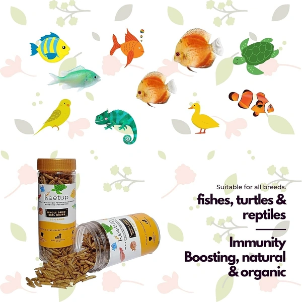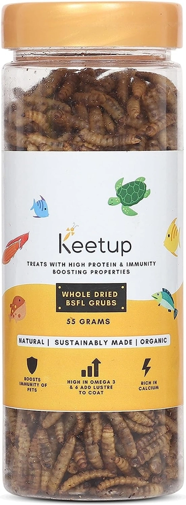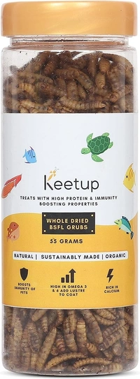 NUTRIENT-RICH FISH FOOD: Keetup's BSFL are packed with Omega-3 and Omega-6 fatty acids, proteins, vitamins, and minerals. They contain up to 40% highly digestible protein and essential amino acids for your fish's need.