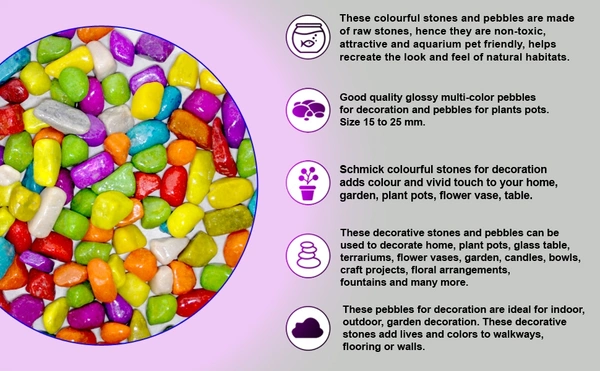 These colourful stones and pebbles are made of raw stones, non-toxic, attractive and aquarium pet friendly, helps recreate the look and feel of natural habitats.