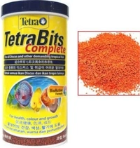 Tetra Bits Complete bioactive formula staple food for mid water & bottom feeder fishes.TetraBits fish food contains spirulina and germ meal and is thus an ideal food for fresh water fish in the aquariums. Every individual fish has different requirements. The TetraBites Complete food is specially formulated keeping in mind the high maintenance of tropical fish such as discus. The food has been especially formulated to maintain the shape and color of the fish. It contains all the required nutrients and vitamins, which will facilitate its growth. The food increases the resistance of fishes towards diseases and this complete fish food prevents all kind of diseases associated with deficiency. The tetra complete food is a pellet form of food, which is a preferred form of food. The pellet food has better than flake food. It's an ideal food for mixed community tanks.