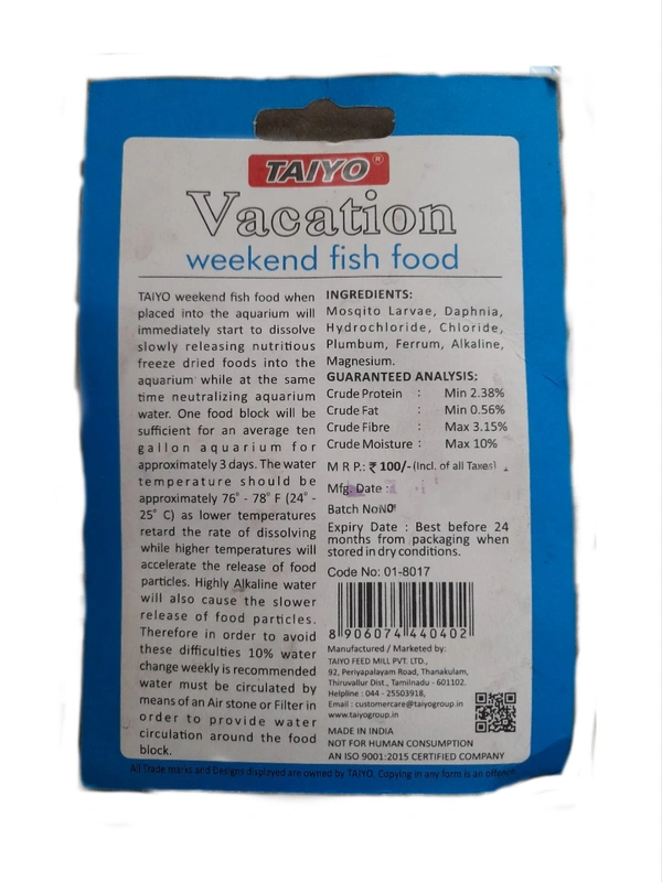 Ensure your aquatic friends are well-fed and thriving even when you’re not around with Aqua Green Pet’s Vacation Weekend Fish Food. Specially designed to provide consistent nutrition and maintain water quality, this innovative food block is a convenient solution for fish owners who want peace of mind during weekends or short trips. Simply place it in your aquarium, and it will do the rest!